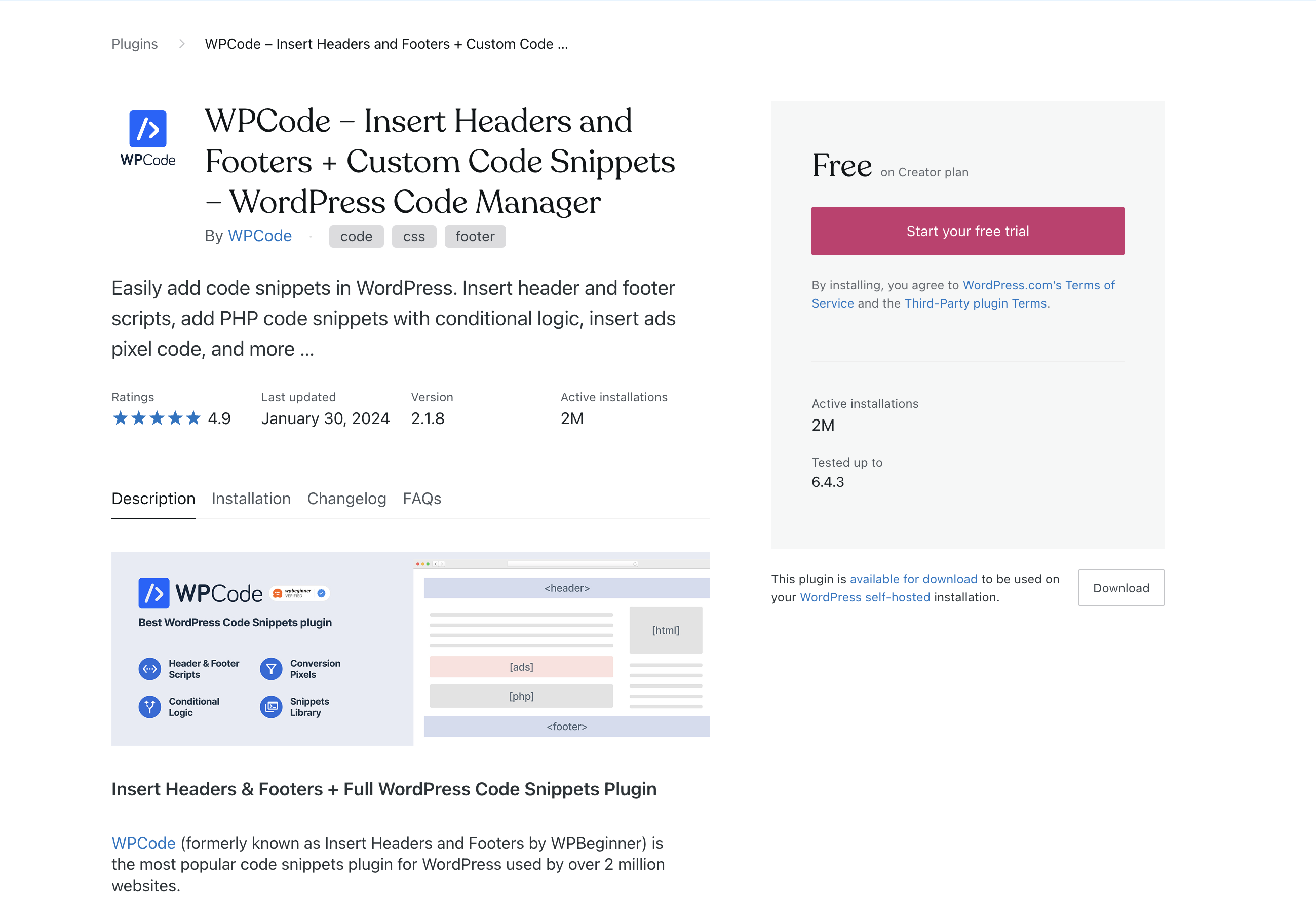**Step 1. Install and activate the free** [**Insert Headers and Footers plugin**](https://wordpress.com/plugins/insert-headers-and-footers) **by WPCode.**